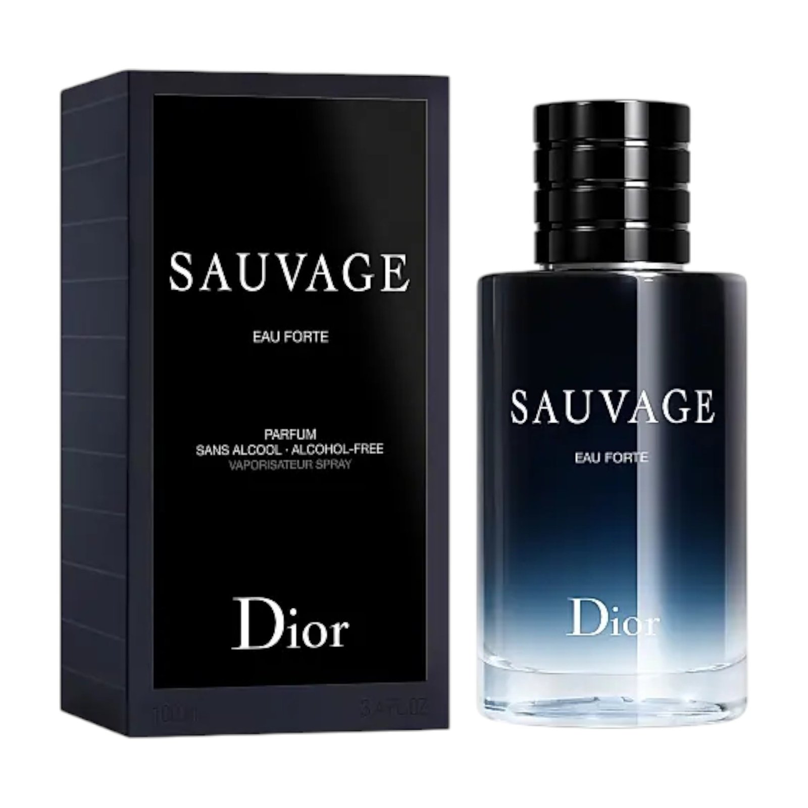 A timeless cologne bottle with intense ombré shading from black to clear via the midnight blue signature adorns the bottle that houses this tumultuous water. The milky formula of Sauvage Eau Forte extends to the translucent glass base. As an object of true luxury, each detail has been carefully studied: the initials CD are engraved on the bottom, and a bee, symbol of Dior men’s fashion, is tucked inside the magnetized cap.Made in France.
